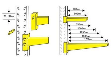 懸臂式貨架有單臂和雙臂之分,專用立柱型材,設(shè)計背拉增強穩(wěn)固型,高強度懸臂,每臂承重可達2T以上,高度依每100mm為單元上下調(diào)節(jié)